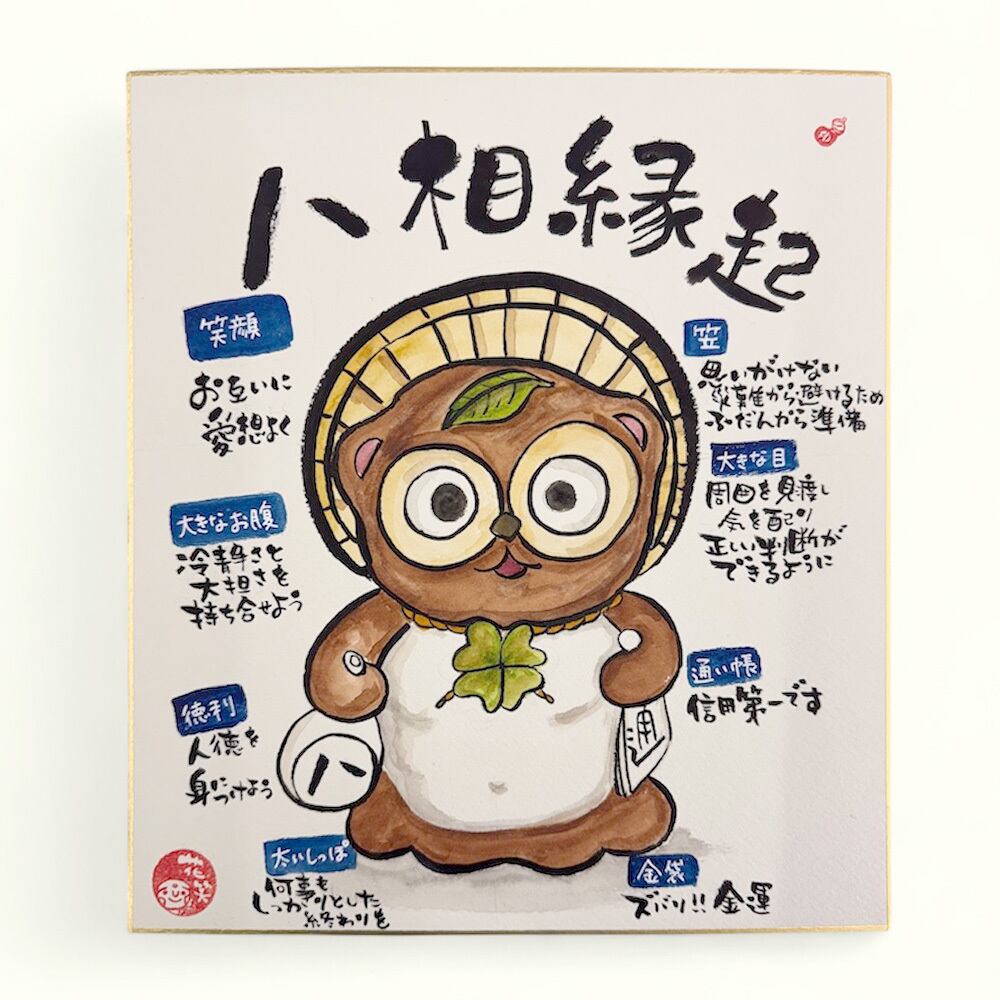 筆文字アート / 八相縁起 信楽たぬき / 色紙サイズ(272×242mm) 受注制作 送料無料